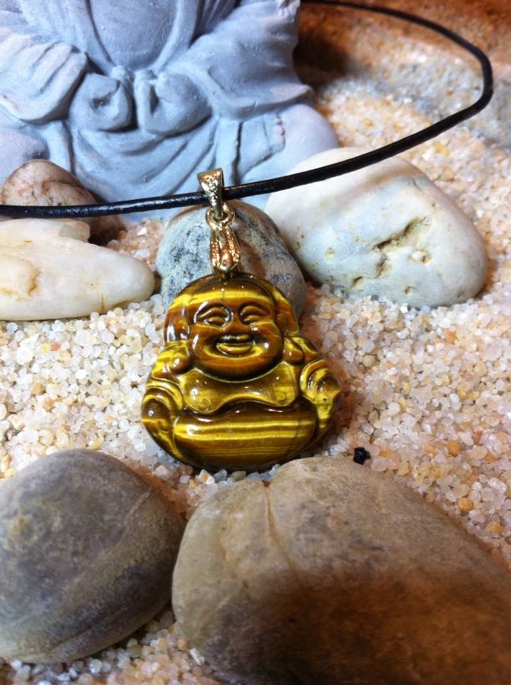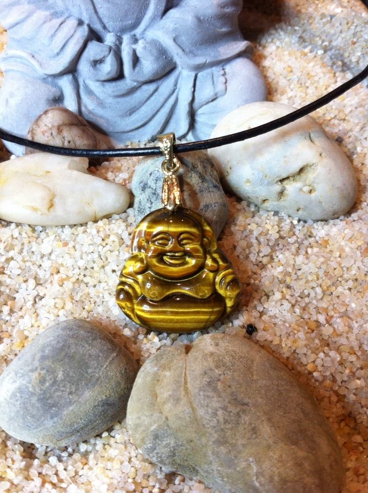 OEIL DE TIGRE-PENDENTIF BOUDDHA RIEUR